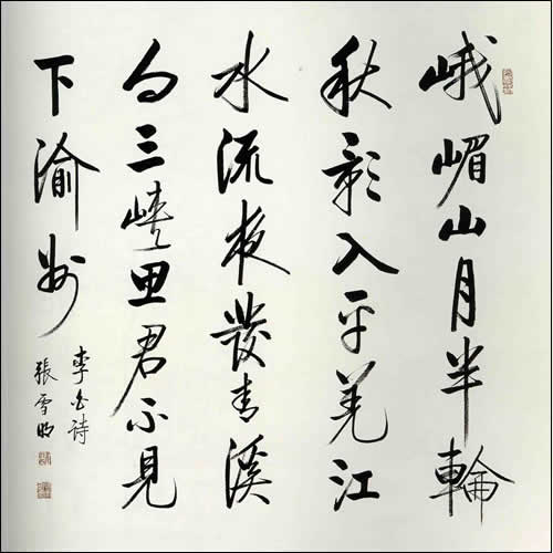 张雪明:男,1965年出生,河北省固安县人。中国书法家协会会员。大学文化,教书十年。1995年毕业于中国书法协会书法培训中心研修班;1996年秋旅居北京。同年进竭启功先生并亲聆教诲;1997年作品入选世界华人书画展。